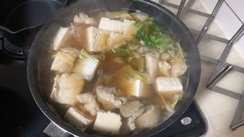 野菜の残りを使い切る目的で鍋にすることが多いです。牛モツが半額の時は冷凍しておき、もつ鍋にして食べます。